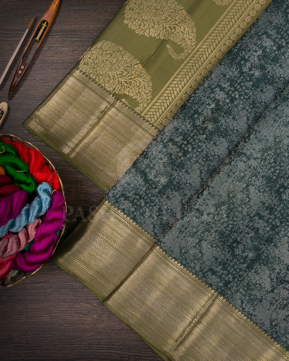 Pine Green And Mehendi Green Kanjivaram Silk Saree - D547(E)