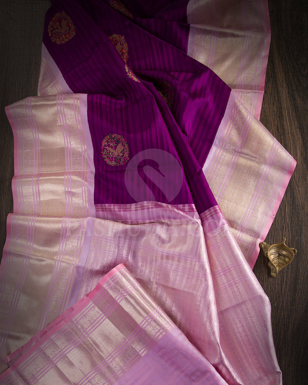 Purple And Baby Pink Kanjivaram Silk Saree - S1132(B)