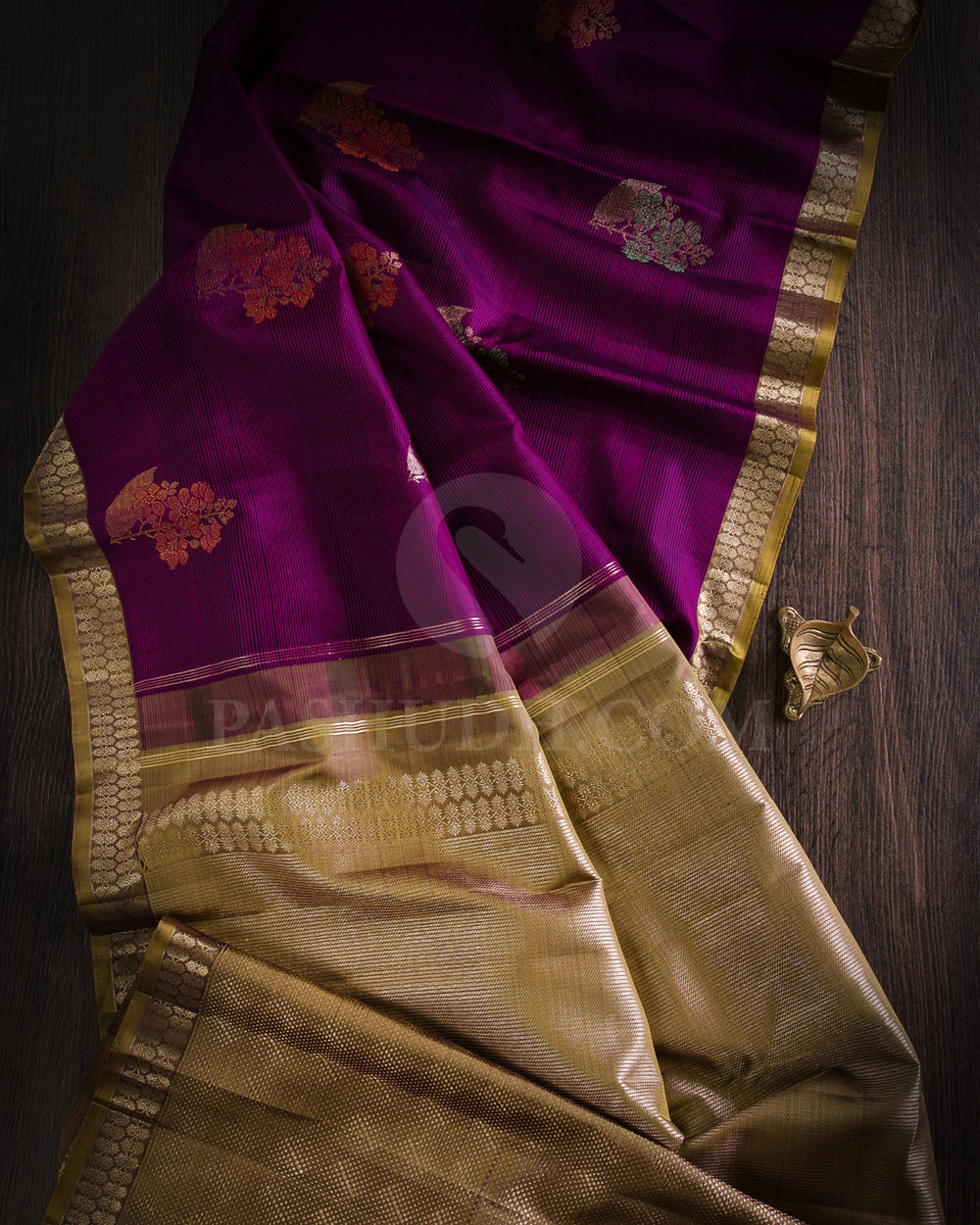 Purple, Pink And Mehendi Green Kanjivaram Silk Saree - S1248(A)