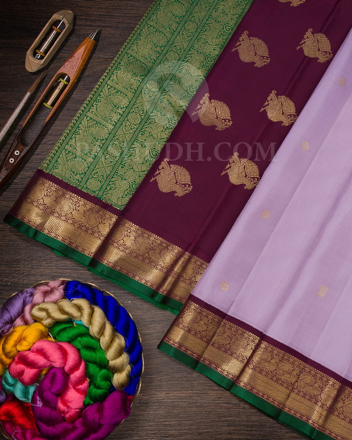 Lavender,Paaku,Emerald Green Pure Zari Kanjivaram Silk Saree-SP368