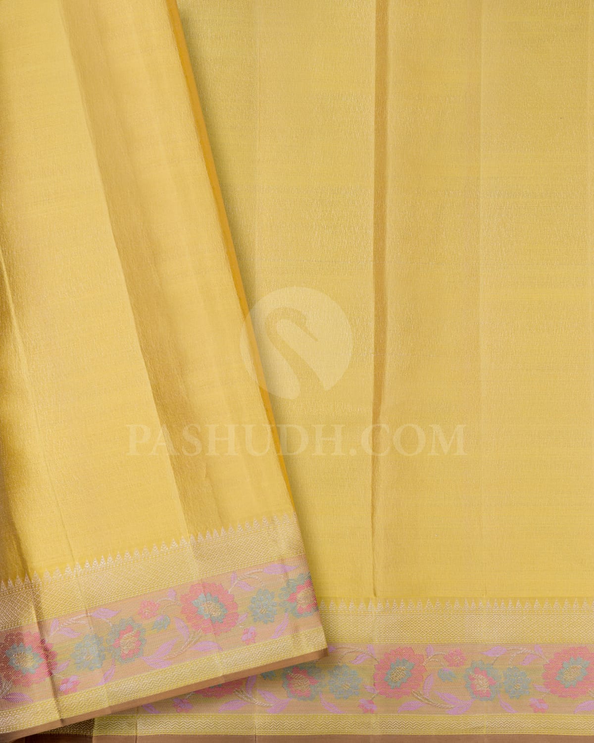 Cream And Yellow Kanjivaram Silk Saree-DJ377(F)
