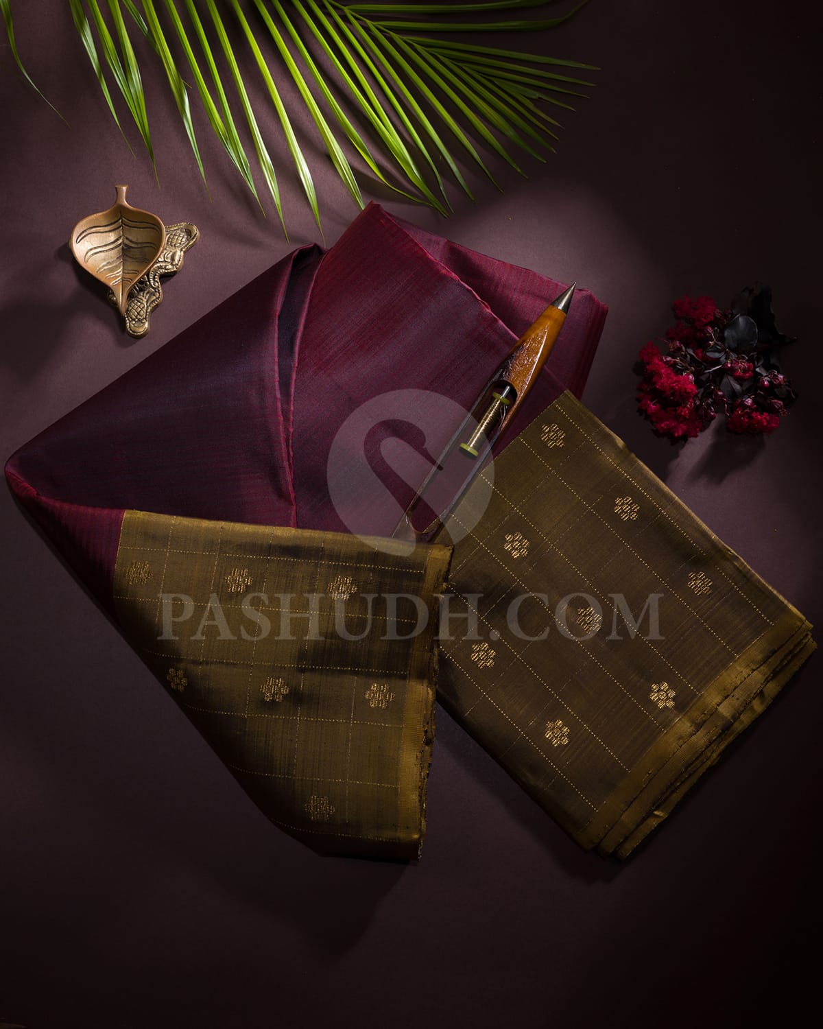 Maroon With Mehendi Green Pure Zari Kanjivaram Silk Saree-SP261