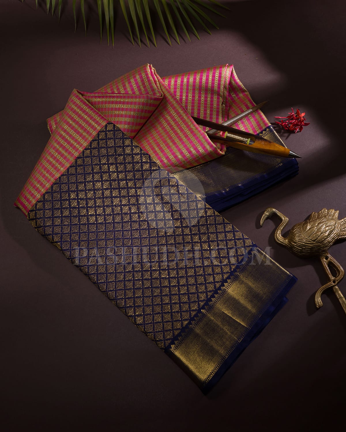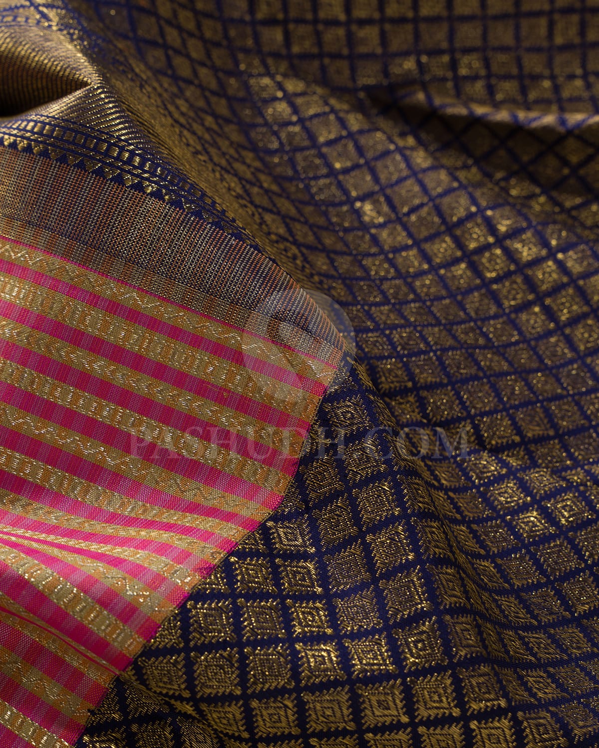 Peach Shot Beige With Navy Blue Kanjivaram Silk Saree-S1624(C)
