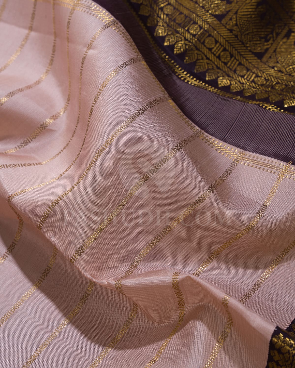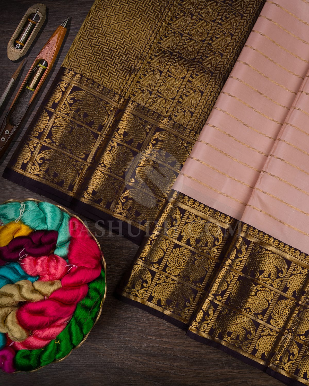 Powder Pink With Aubergine Kanjivaram Silk Saree-SP399