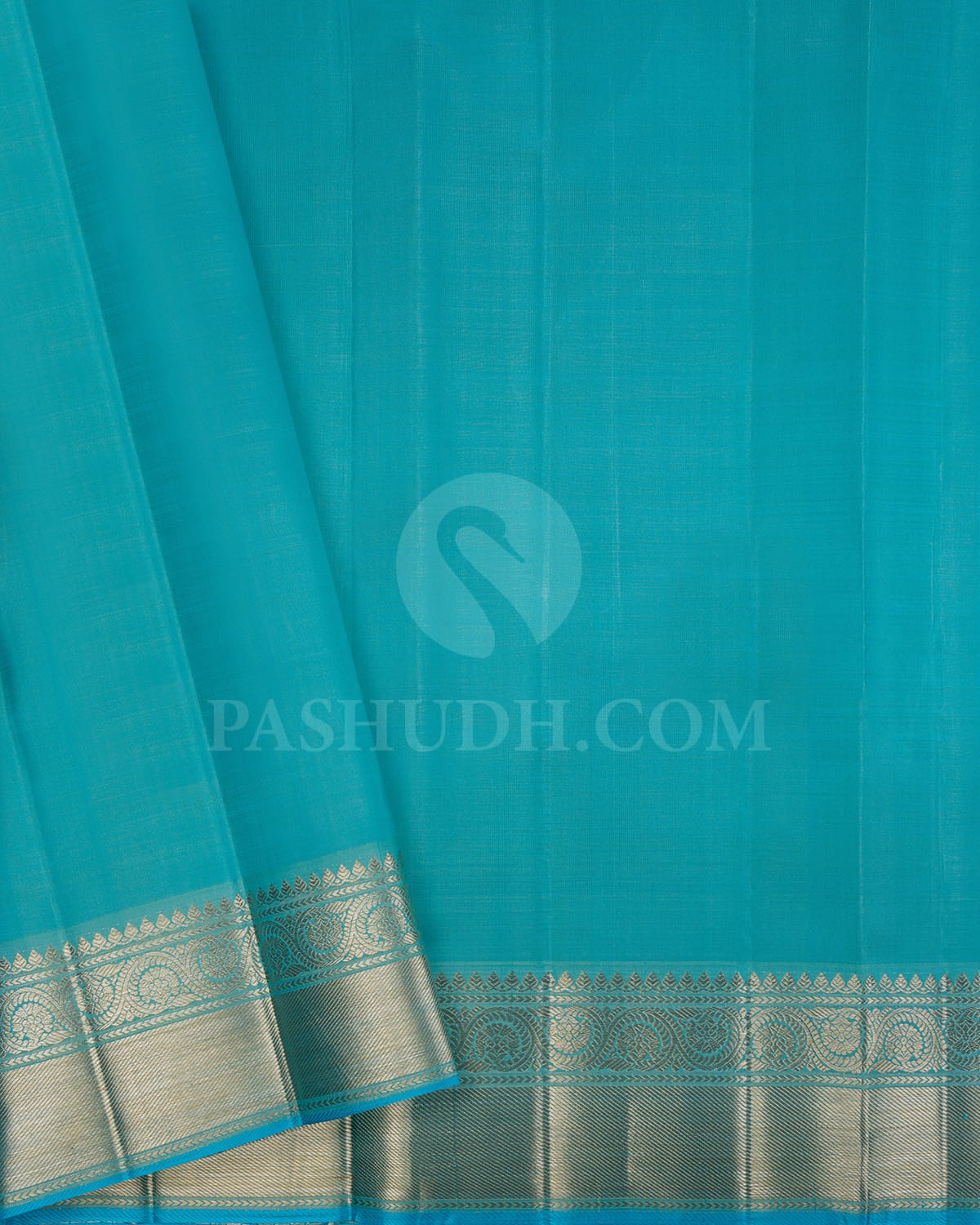 Royal Navy Blue And Aqua Blue Kanjivaram Silk Saree-S1499(A)
