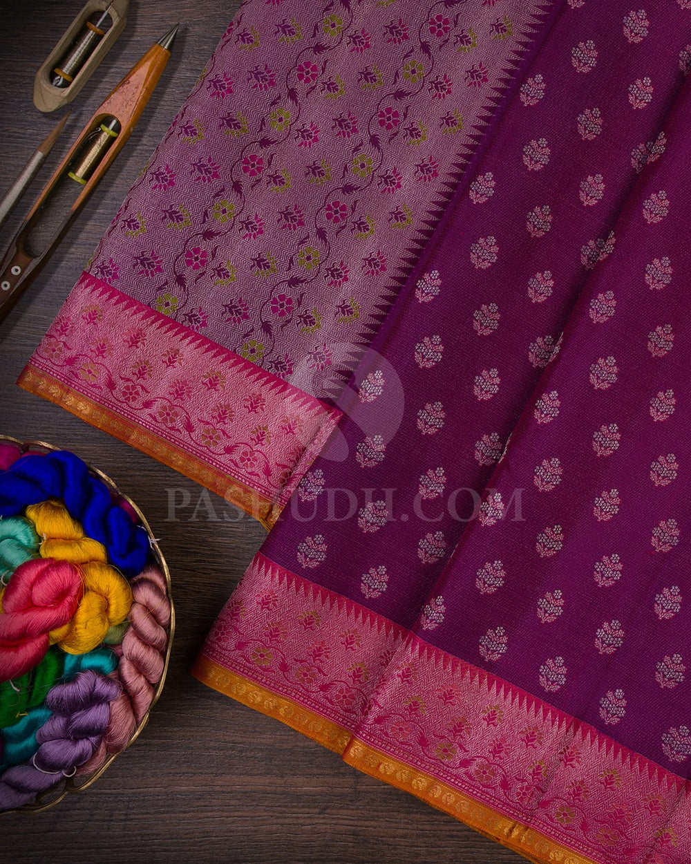 Dark Lavender & Pink Kanjivaram Silk Saree-DJ353(C)