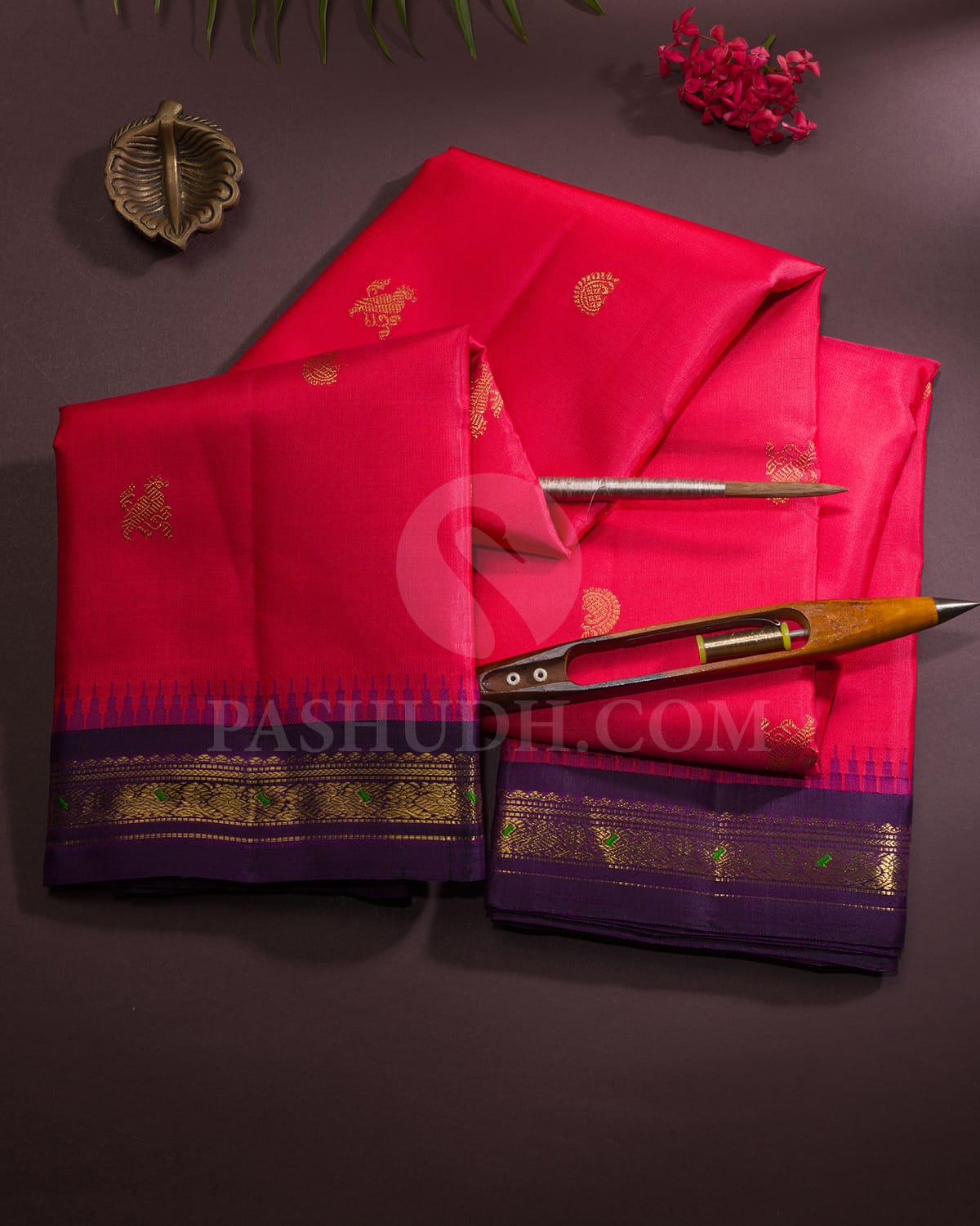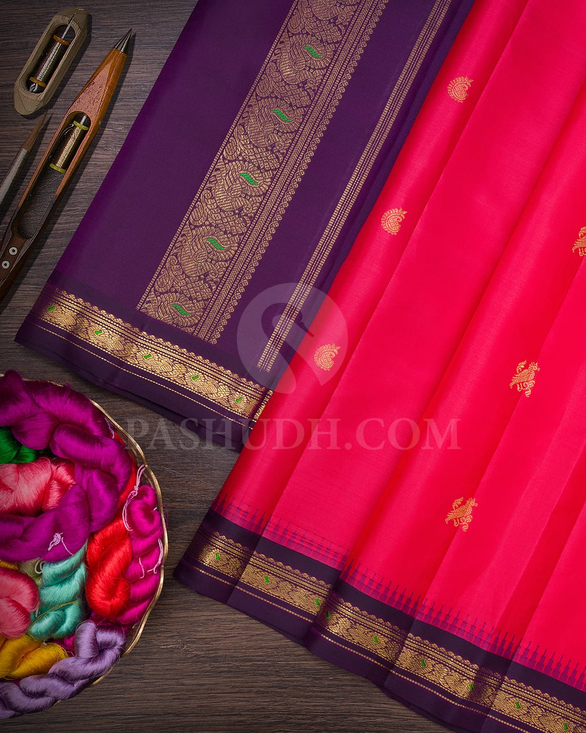 Fuchsia Pink And Purple Kanjivaram Silk Saree-SP315