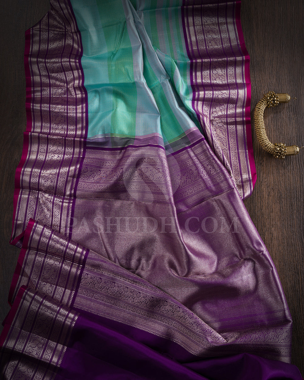 Green, Blue, Pink And Violet Kanjivaram Silk Saree - S1360(C)