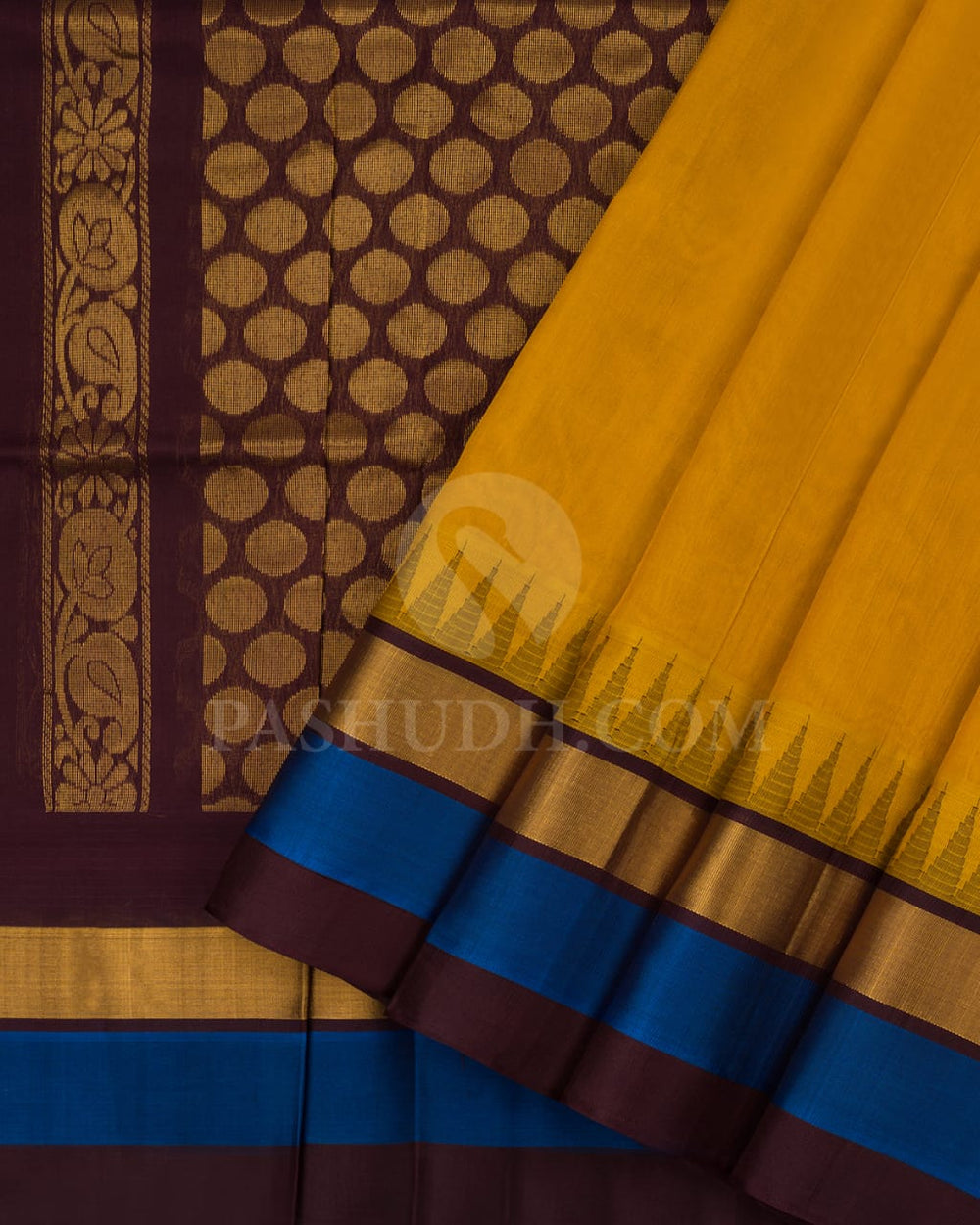 Musturd Yellow & Brown Kanjivaram Silk Cotton Saree - RC23