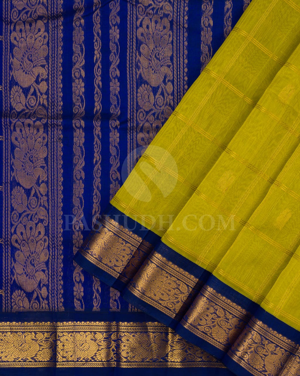 Pear Green & Royal Blue Kanjivaram Silk Cotton Saree - RC24