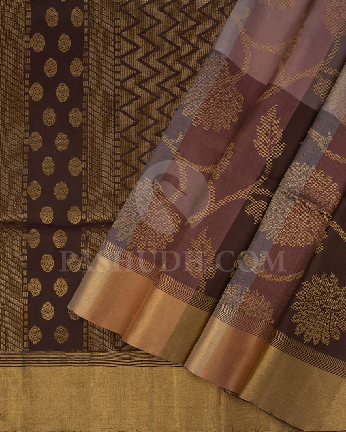 Product Code: AC133 Fabric : Soft Silk Length: 5.5m Blouse – 80cm Weight (approx): 633 grams Wash Care: Dry Wash Delivery: 4-7 Business days Colors: Grey,Beige and Brown