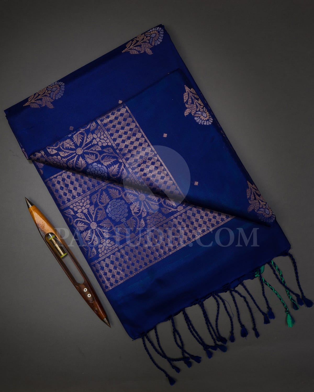 Royal Blue Soft Silk Saree With Green Blouse-AC166