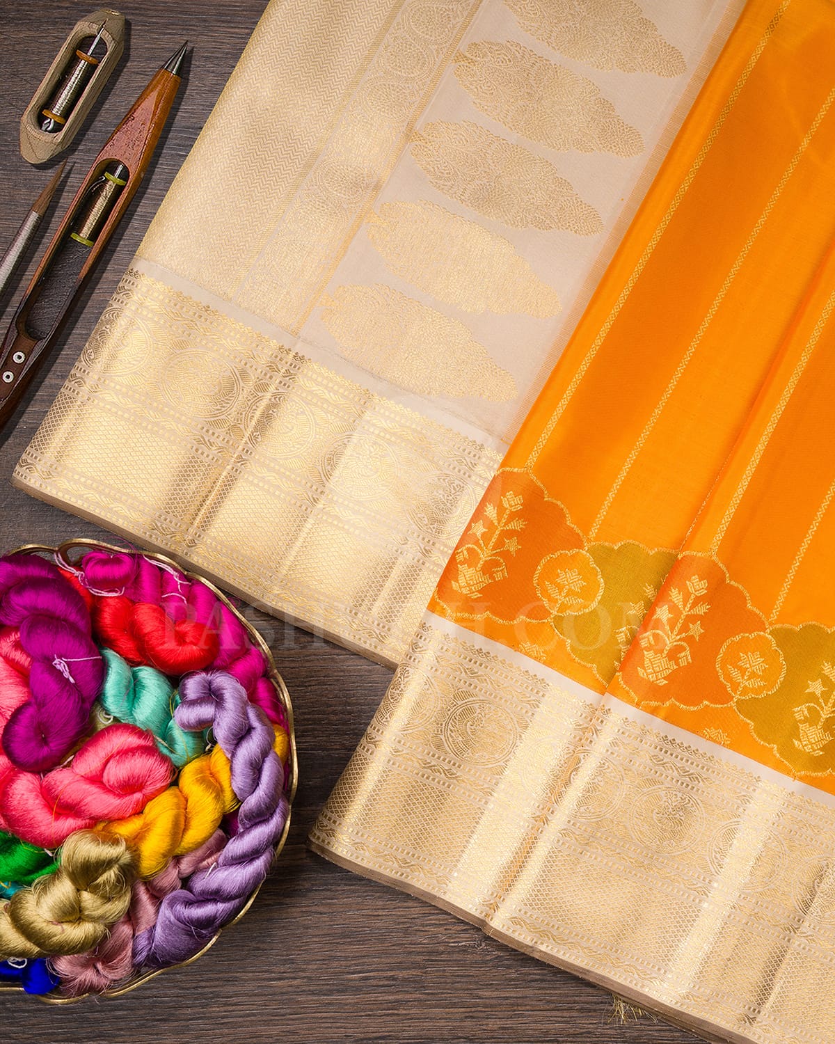 Mango Yellow With Half White Kanjivaram Silk Saree-S1536(B)