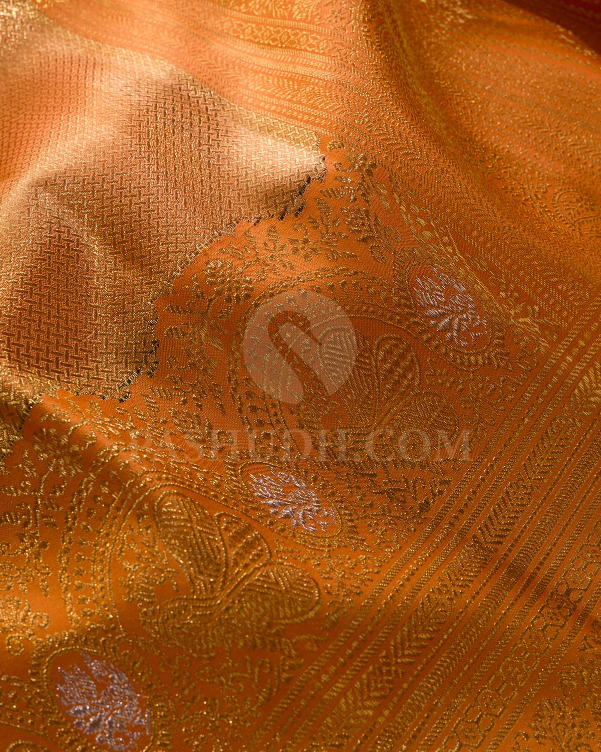 Product Code: S1588(A) Fabric : Pure Kanjivaram Silk Length: 5.5m Blouse – 80cm Weight (approx): 945 grams Wash Care: Dry Wash Delivery: 4-7 Business days Colors: Orange