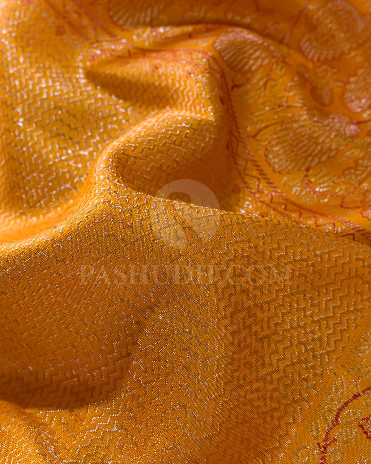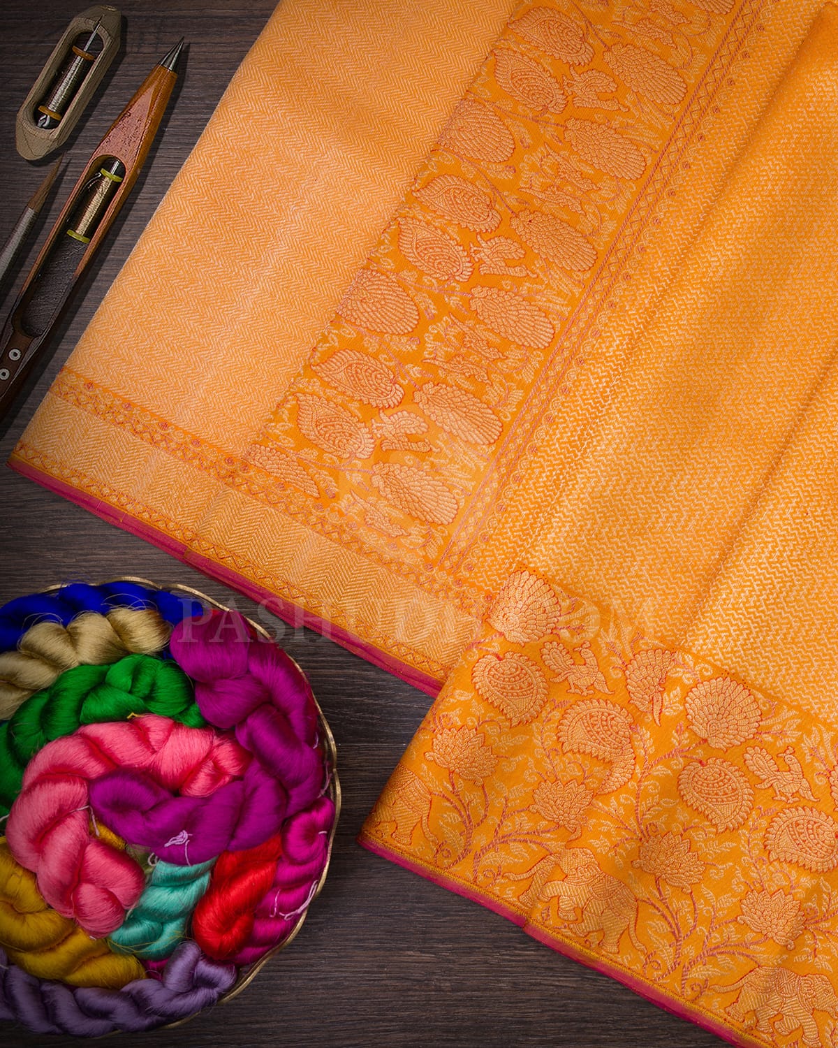Product Code: S1559(C) Fabric : Pure Kanjivaram Silk Length: 5.5m Blouse – 80cm Weight (approx): 834 grams Wash Care: Dry Wash Delivery: 4-7 Business days Colors: Orange