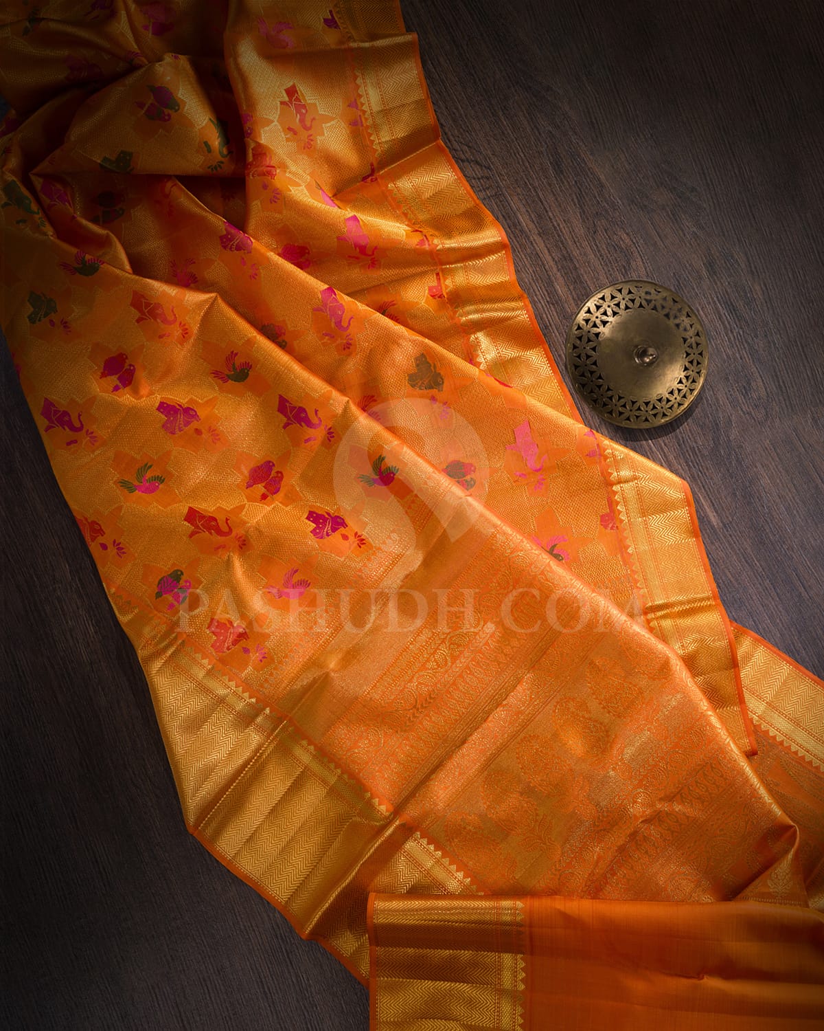Orange Pure Zari Kanjivaram Silk Saree-P208(A)