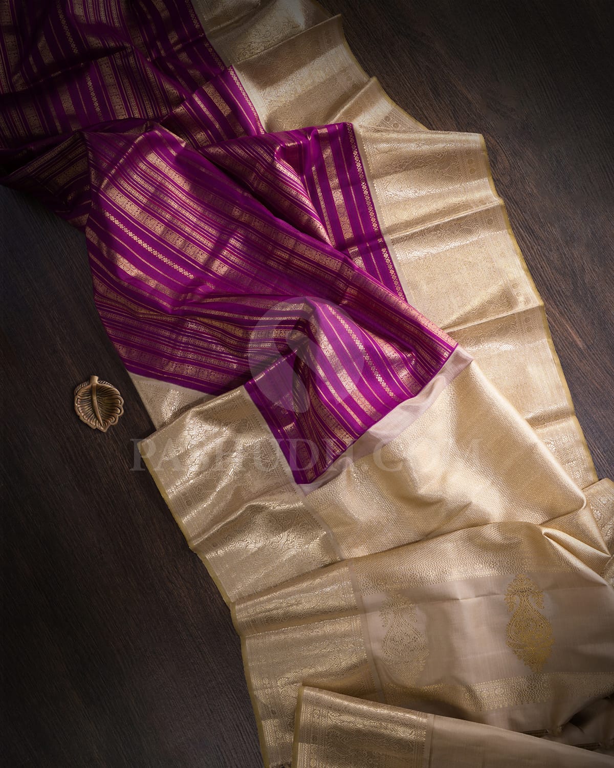 Violet And Half White Kanjivaram Silk Saree-S1203(E)