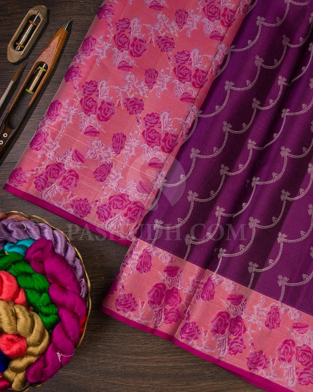 Violet And Peach Kanjivaram Silk Saree -DJ351(J)