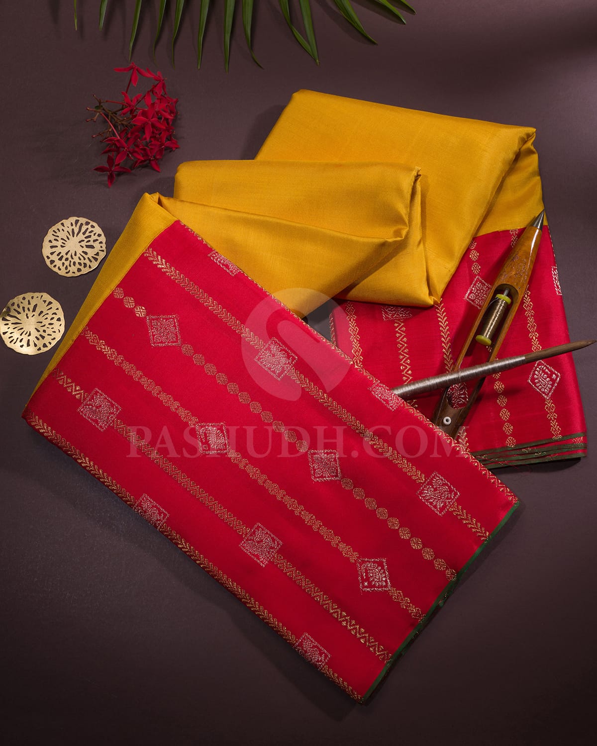 Product Code: P160(A) Fabric: Kanjivaram Silk Length: 5.5m Blouse – 80cm Weight (approx): 615 grams Wash Care: Dry Wash Delivery: 4-7 Business days Colors: Yellow And Red