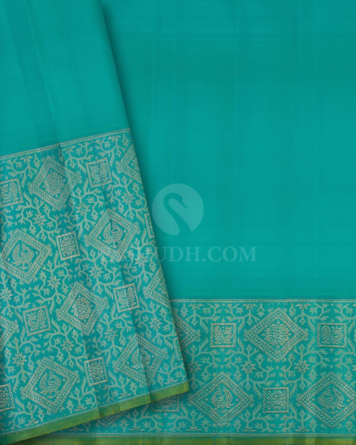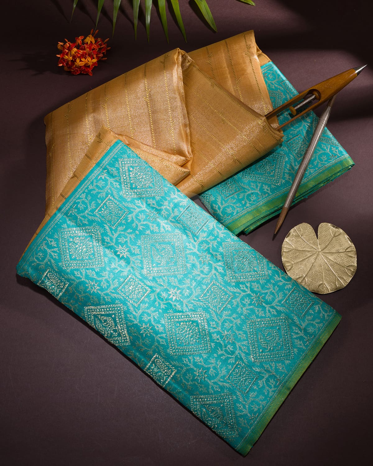Golden Yellow With Sky Blue Kanjivaram Silk Saree-S1627(B)