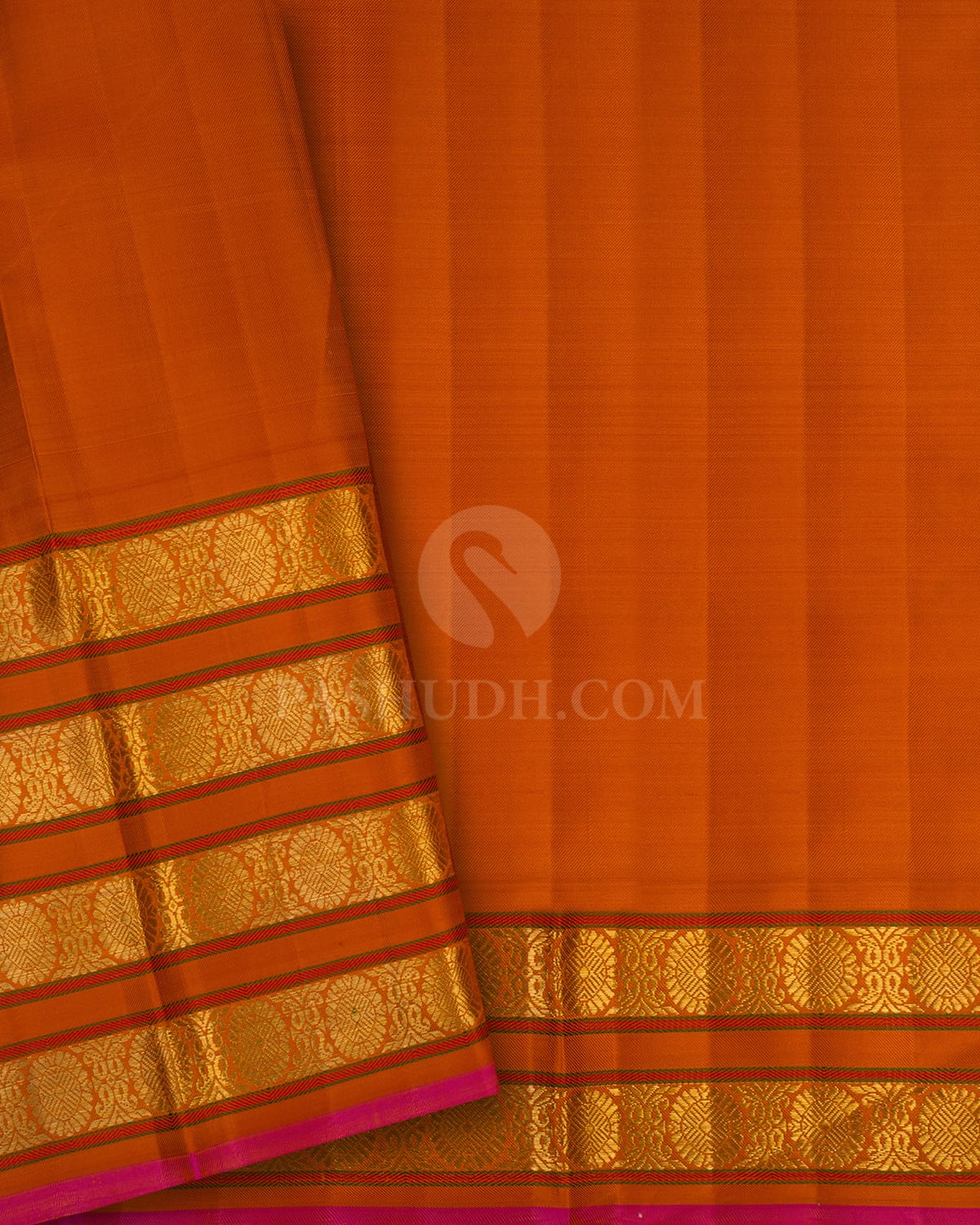 Product Code: S1682(B) Fabric : Pure Kanjivaram Silk Length: 5.5m Blouse – 80cm Weight (approx): 860 grams Wash Care: Dry Wash Delivery: 4-7 Business days Colors: Rust Orange
