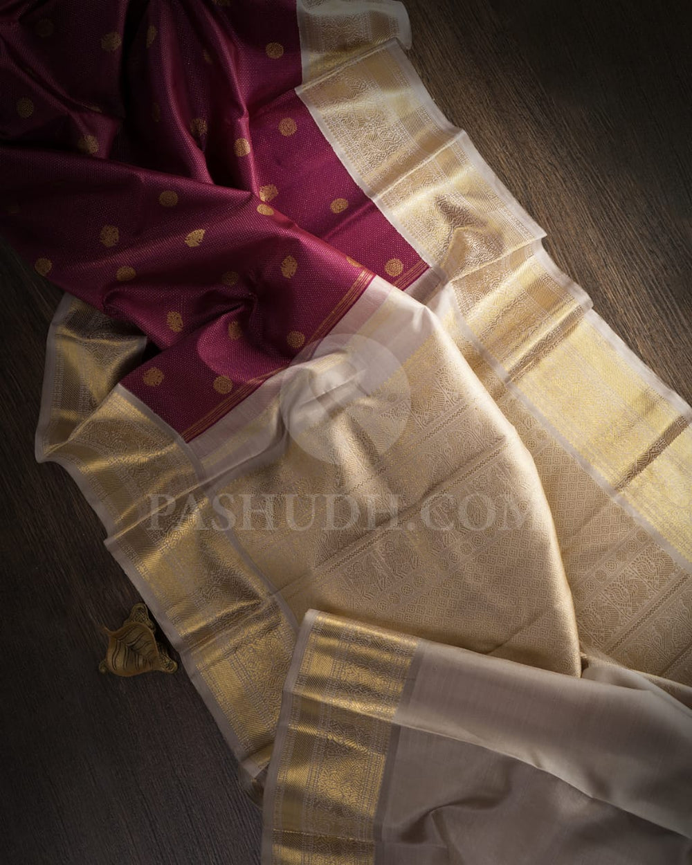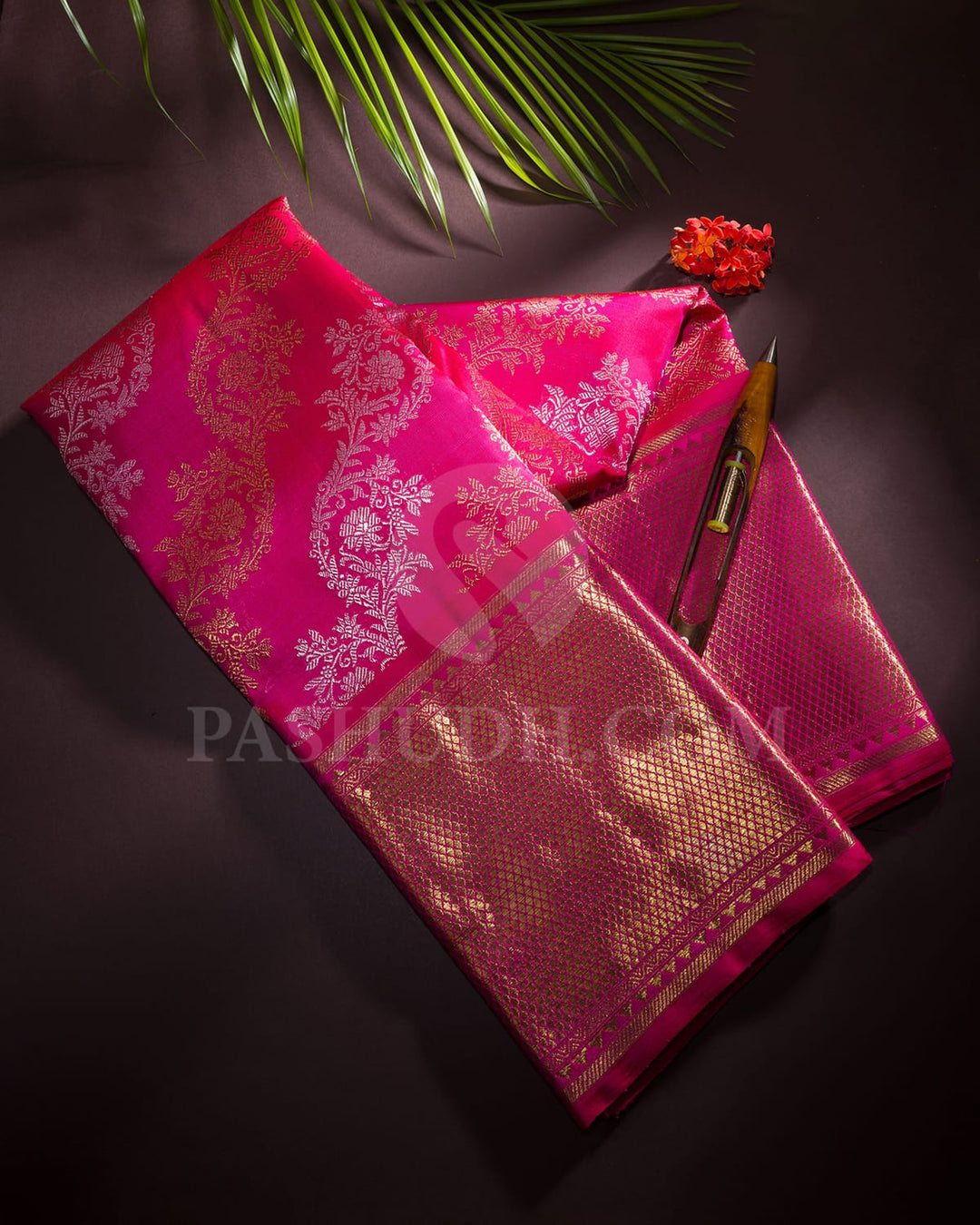 This exquisite collection of Kanjivaram silk sarees, adorned with real zari, epitomizes the fusion of high-end fashion and timeless tradition, creating ensembles truly befitting royalty. Radiating opulence and grandeur, these stunning Kanjivarams with real zari are ideal for elite brides and women who exude unmatched regality. Skillfully woven from the finest silk and embellished with the richest zari, this collection epitomizes the haute couture of silk sarees. With their graceful drapes and refined aesthetics, these classic Kanjivaram silk sarees transcend trends and stand the test of time. Elevate your style with these captivating masterpieces that capture the essence of timeless fashion and leave a lasting impression on every occasion.