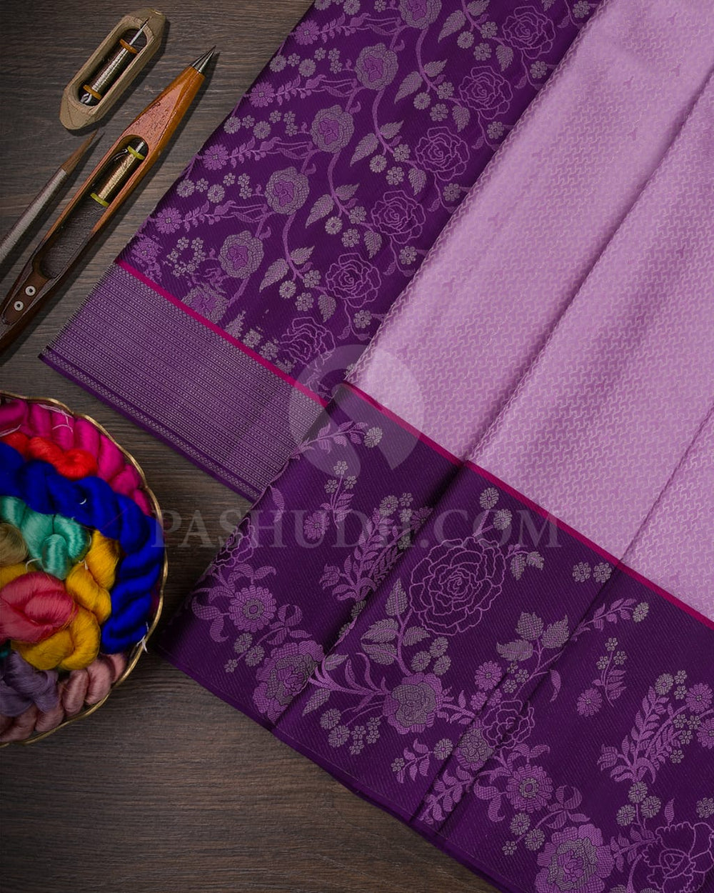 Lavender &Purple Kanjivaram Silk Saree With Meenakari Roses And Jaals - DJ344(D)