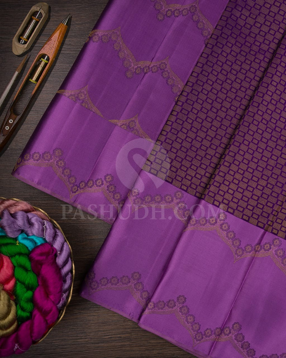 Plum And Violet Kanjivaram Silk Saree-D610(B)