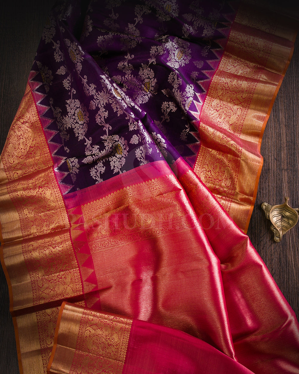 Purple And Pale Orange Kanjivaram Silk Saree - S1242(A)