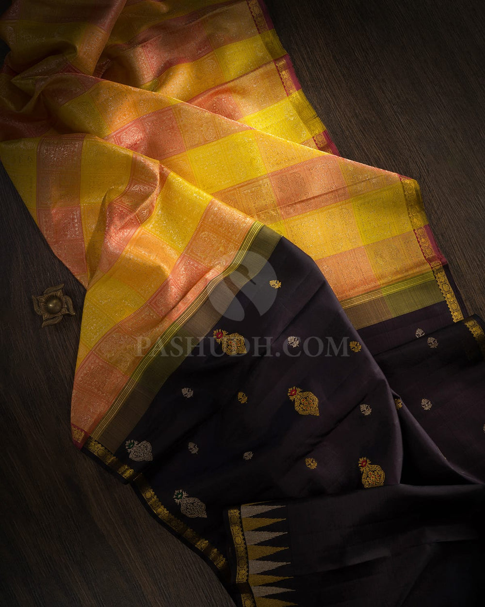 Explore the elegance of black Kanjivaram silk sarees at Pashudh.com. Discover our exquisite collection of authentic Kanjivarams, featuring intricate designs and impeccable craftsmanship. Symbolizing power, sophistication, and mystique, these black Kanjivaram silks carry a deep significance. Elevate your traditional ensemble with these timeless pieces that effortlessly blend tradition, grace, and cultural symbolism.