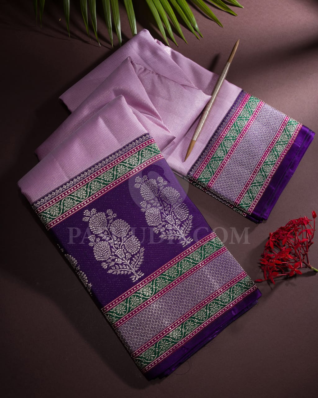 Experience the ethereal beauty of lavender Kanjivaram silk sarees at Pashudh.com. Explore our exquisite collection of authentic Kanjivarams, meticulously handcrafted with intricate designs and flawless craftsmanship. With their serene and graceful allure, these lavender Kanjivaram silks hold a deep significance, symbolizing timeless elegance. Elevate your style with these enchanting pieces, blending tradition and sophistication seamlessly.