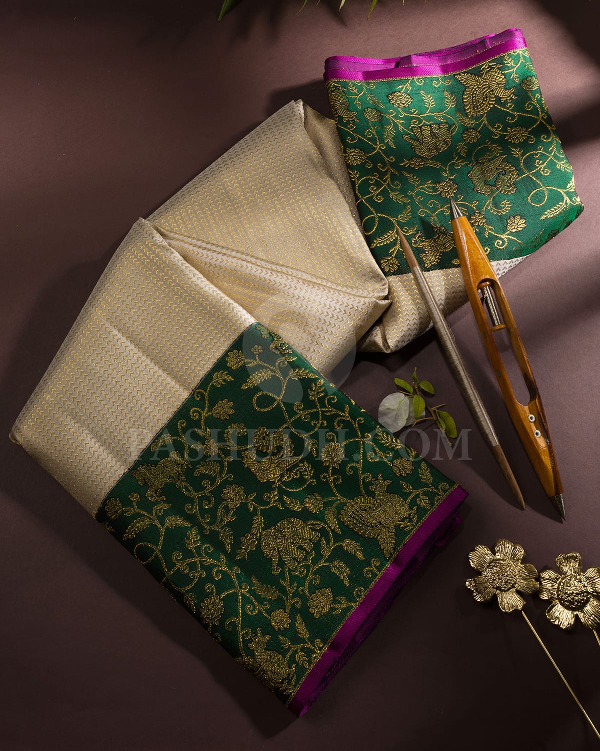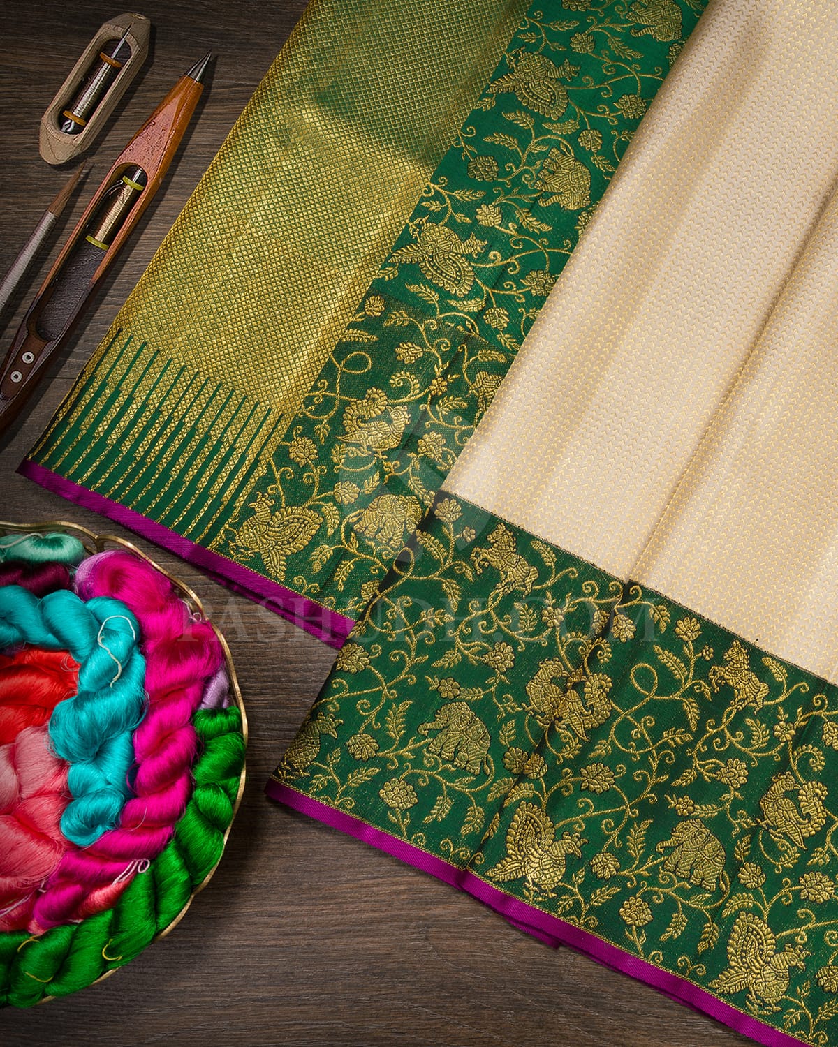 Cream And Bottle Green Bridal Kanjivaram Silk Saree-S1631(D)