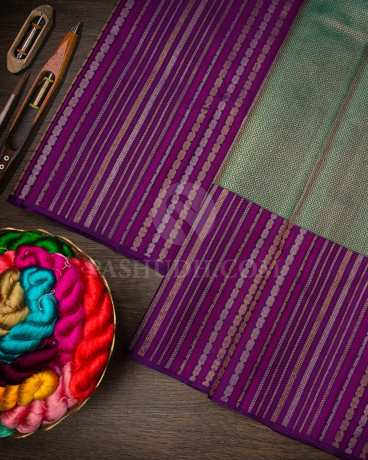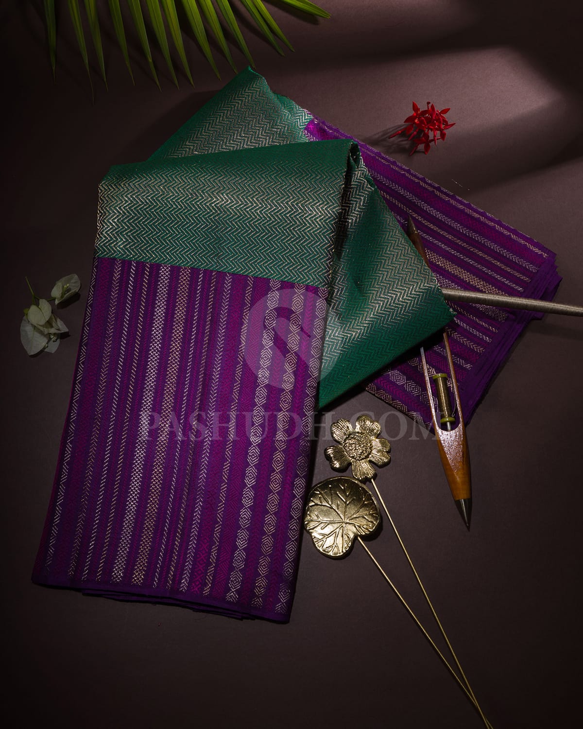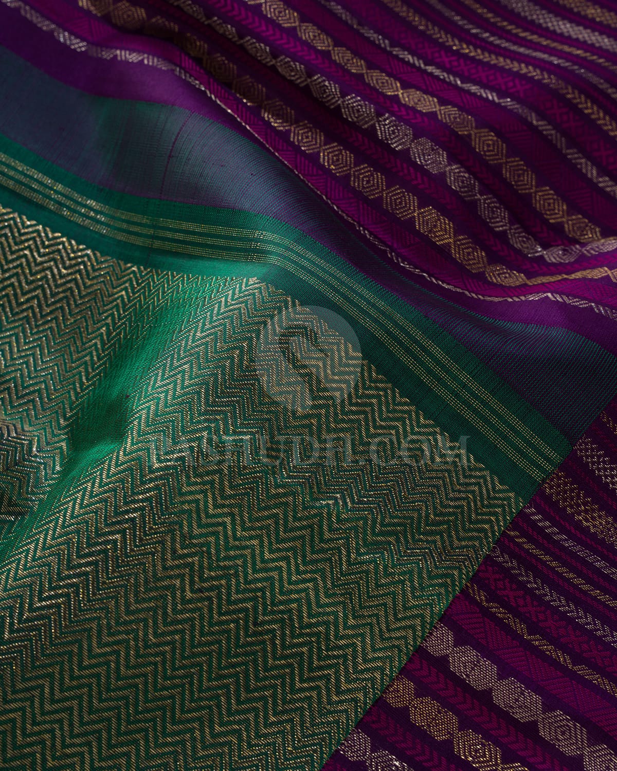 Emerald Green With Purple Kanjivaram Silk Saree-S1591(C)