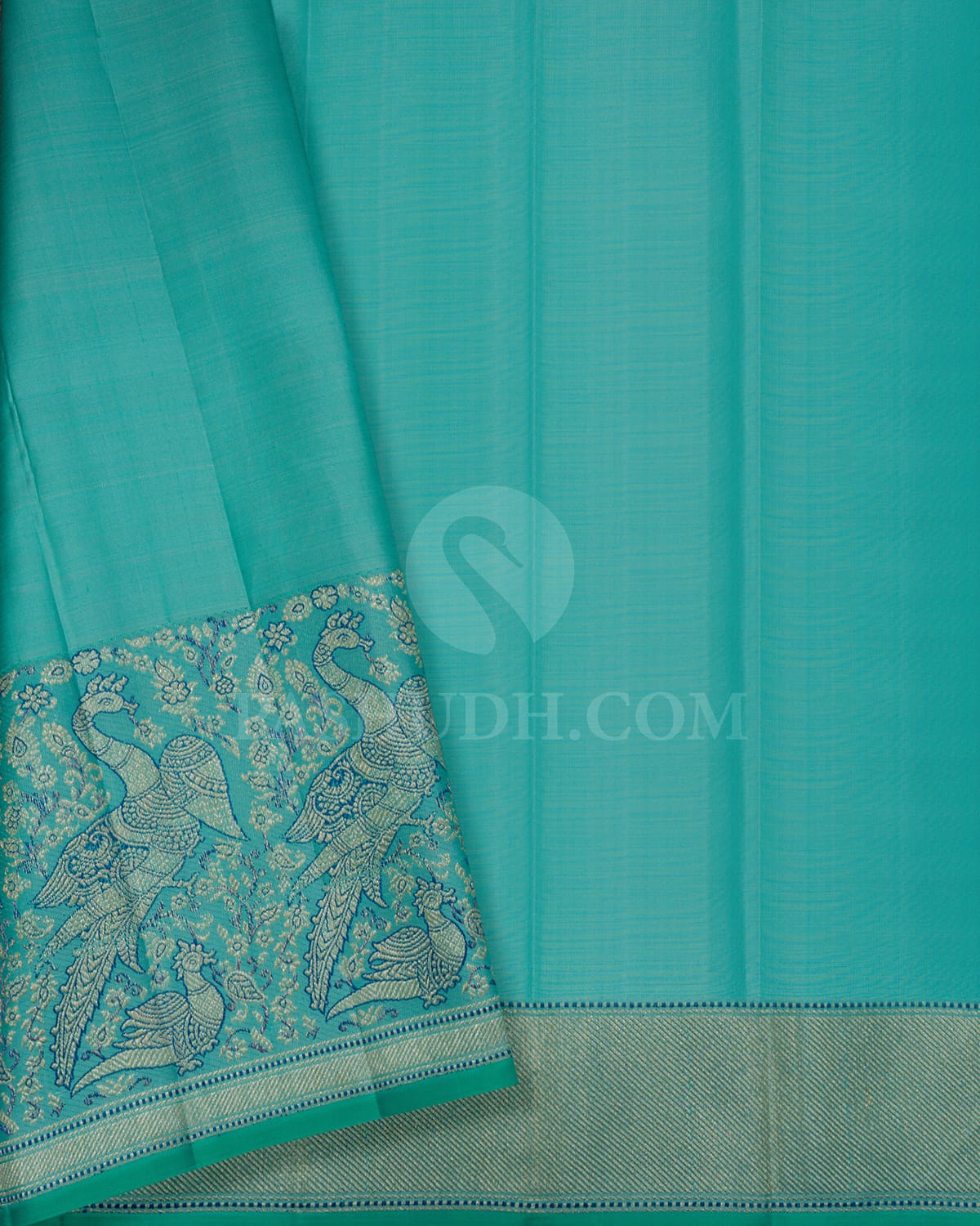 Product Code: S1557(D) Fabric : Pure Kanjivaram Silk Length: 5.5m Blouse – 80cm Weight (approx): 1021 grams Wash Care: Dry Wash Delivery: 4-7 Business days Colors: Sky Blue