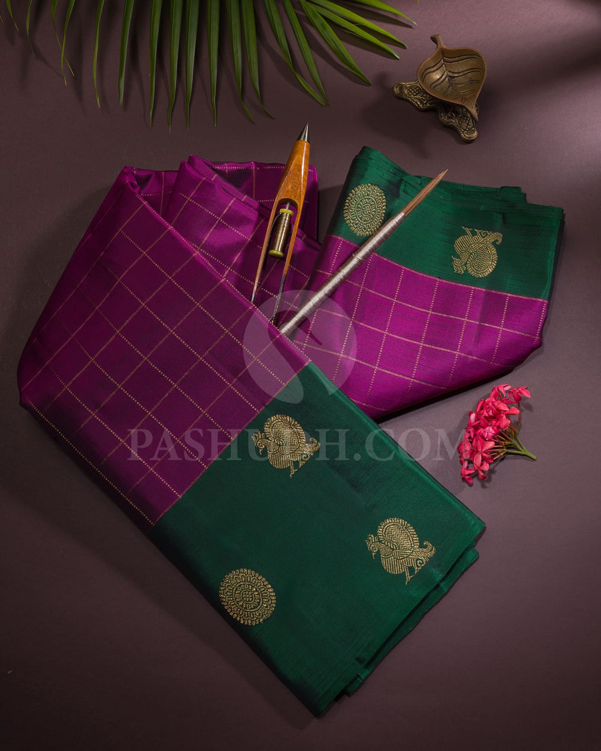 Violet And Bottle Green Pure Zari Kanjivaram Silk Saree-SP324