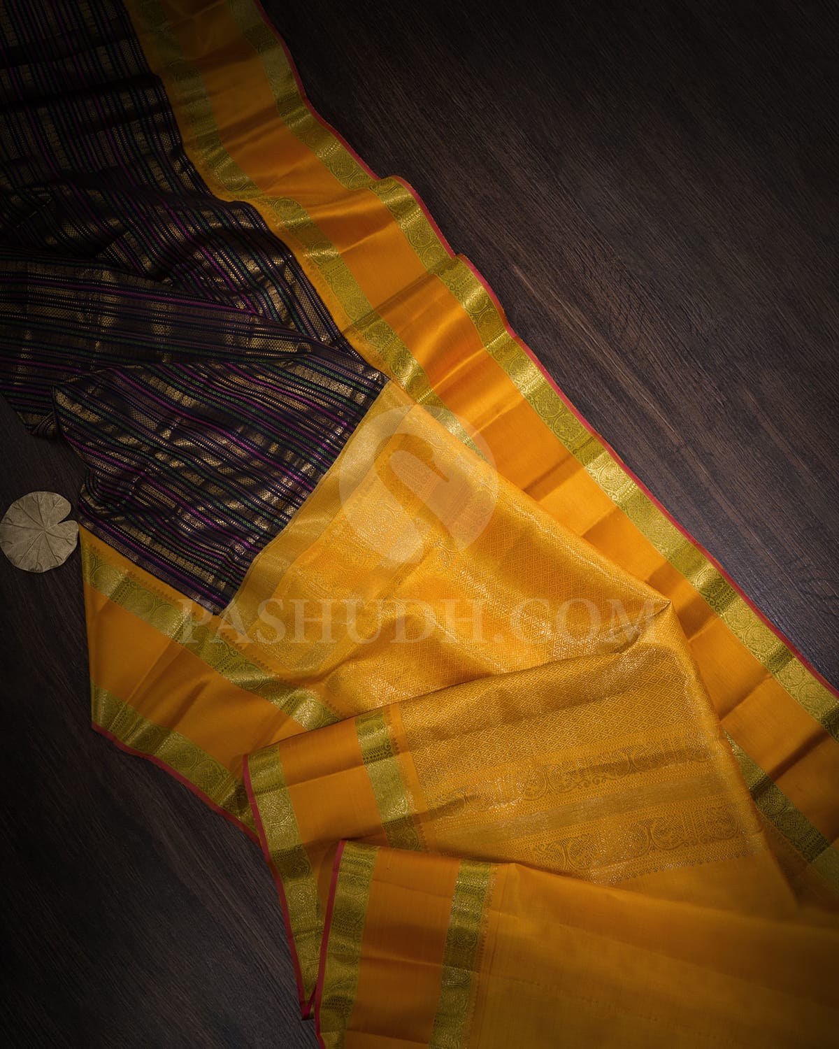 Navy Blue And Mango Yellow Kanjivaram Silk Saree-S1484(G)