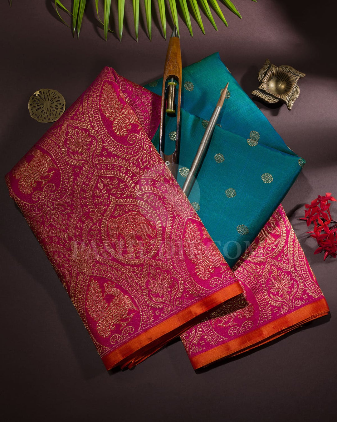 This exquisite collection of Kanjivaram silk sarees, adorned with real zari, epitomizes the fusion of high-end fashion and timeless tradition, creating ensembles truly befitting royalty. Radiating opulence and grandeur, these stunning Kanjivarams with real zari are ideal for elite brides and women who exude unmatched regality. Skillfully woven from the finest silk and embellished with the richest zari, this collection epitomizes the haute couture of silk sarees. With their graceful drapes and refined aesthetics, these classic Kanjivaram silk sarees transcend trends and stand the test of time. Elevate your style with these captivating masterpieces that capture the essence of timeless fashion and leave a lasting impression on every occasion.