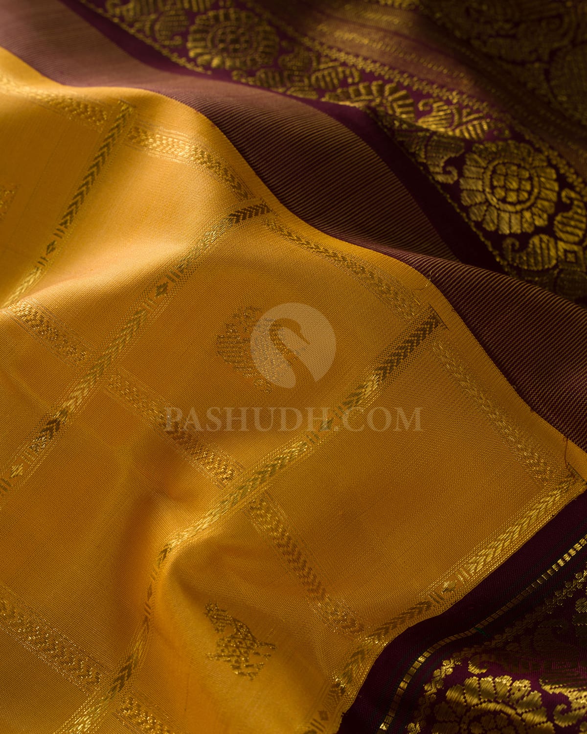 Grace and grandeur in every weave, this traditional Kanjivaram silk saree features a bright yellow body adorned with gold zari checks, accented with intricate animal motifs that celebrate the artistry of South Indian weaving. The rich arakku and gold zari retta-petta border adds a bold and majestic contrast, enhancing its regal appeal. The vibrant yellow paired with deep arakku creates a striking and festive combination. Woven with precision, it reflects timeless craftsmanship and cultural richness. Perfect for special occasions, this saree beautifully blends elegance with tradition.