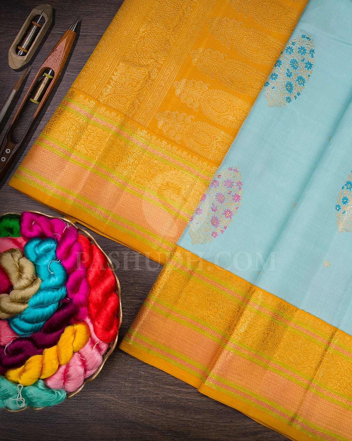 Sky Blue With Mango Yellow Kanjivaram Silk Saree-S1696(A)