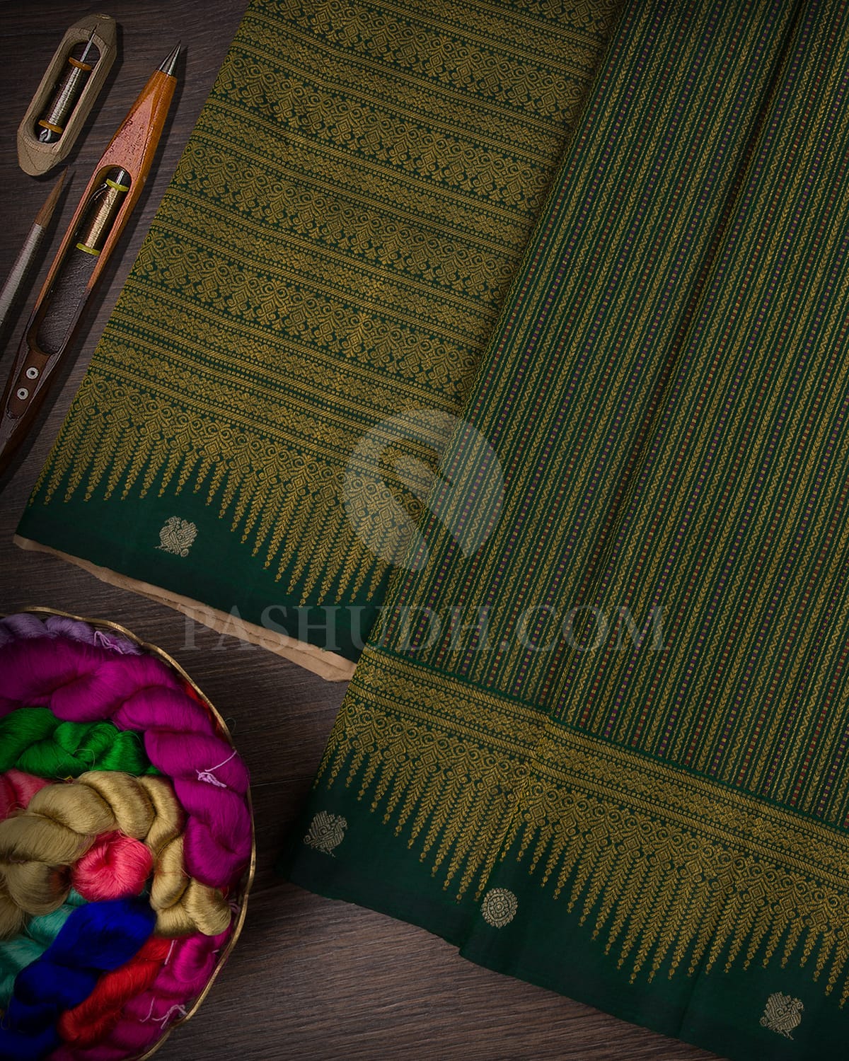 Bottle Green And Cream Kanjivaram Silk Saree-S1494(A)