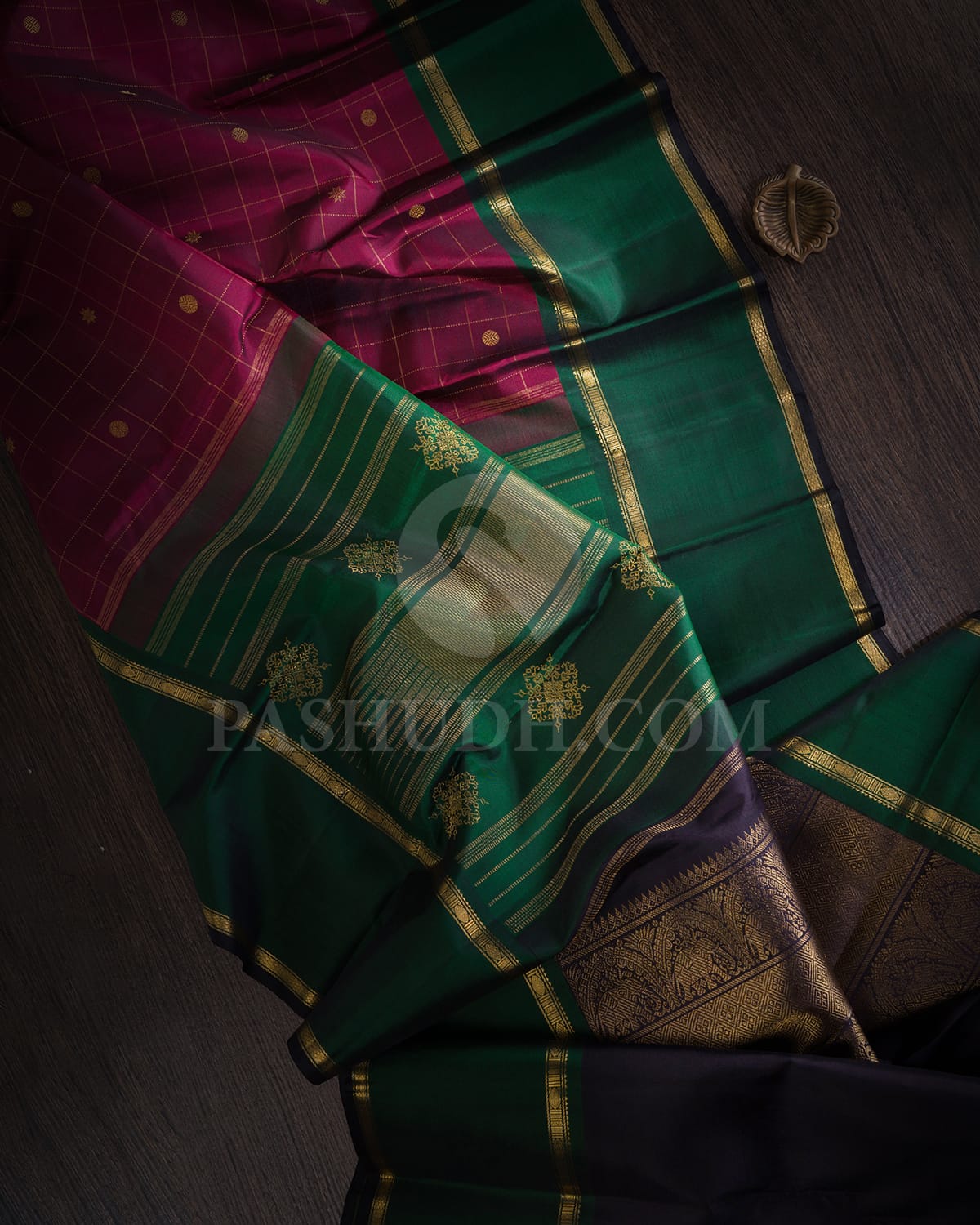 Maroon And Bottle Green Kanjivaram Silk Saree-SP314