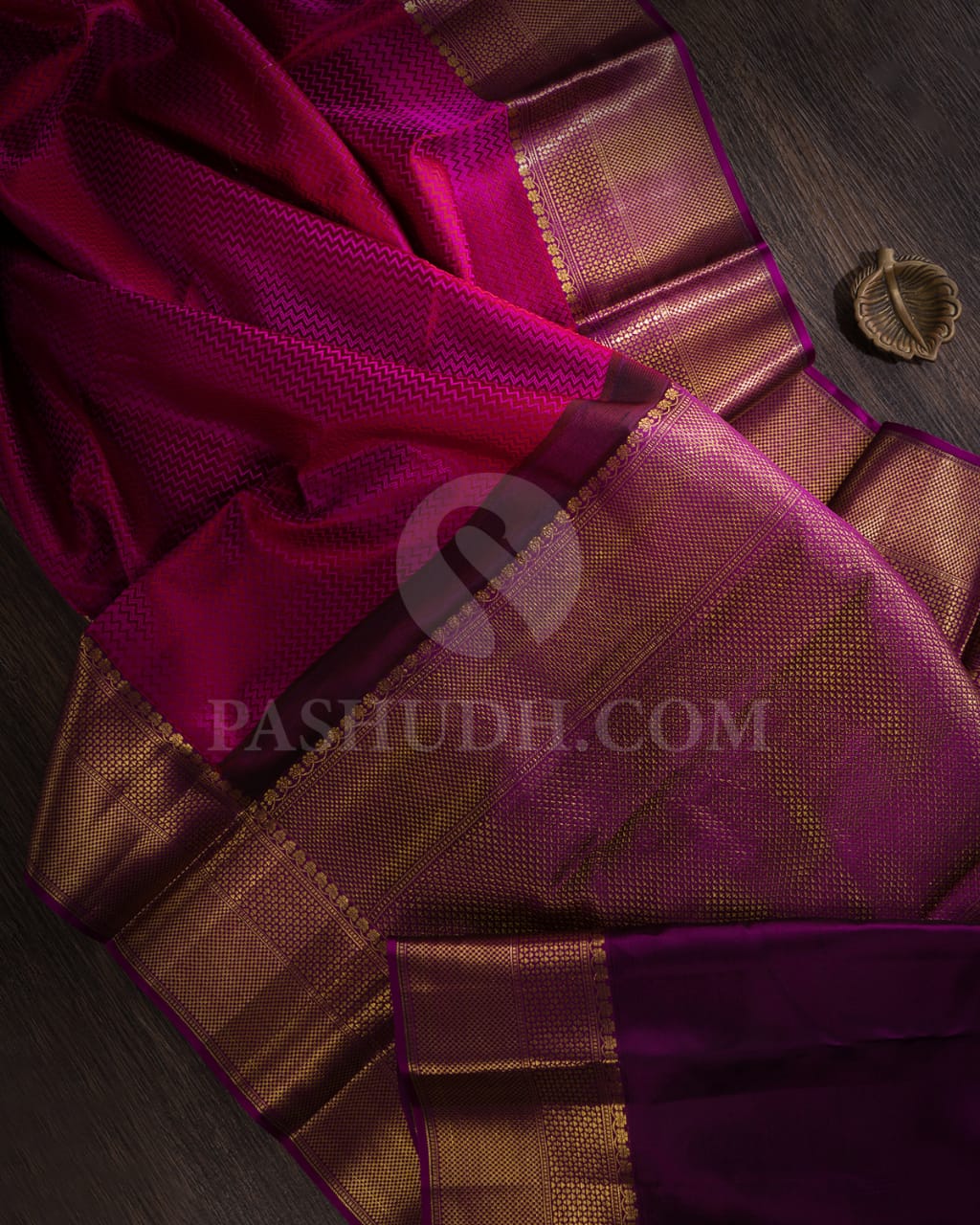 Orange And Rani Pink With Magenta Kanjivaram Silk Saree-D637(A)