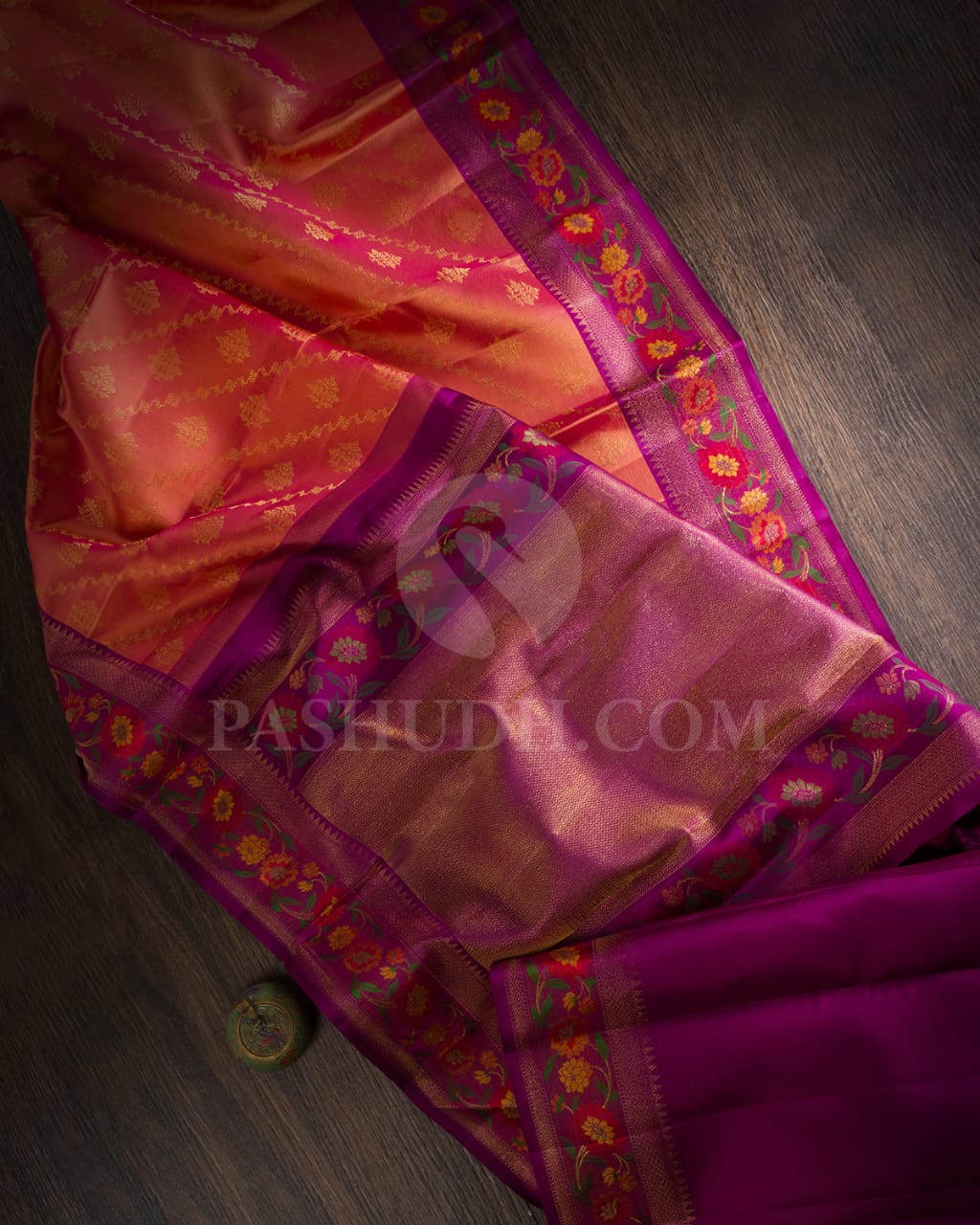 Peach And Violet Kanjivaram Silk Saree-DJ377(A)